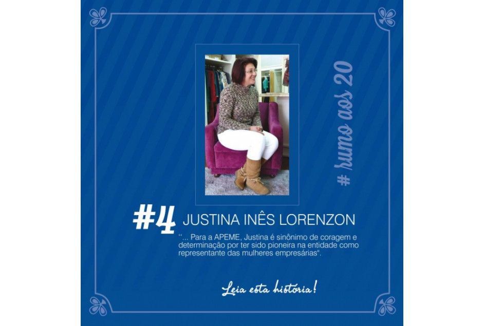 Para a APEME, Justina é sinônimo de coragem e determinação por ter sido pioneira na entidade como representante das mulheres empresárias.