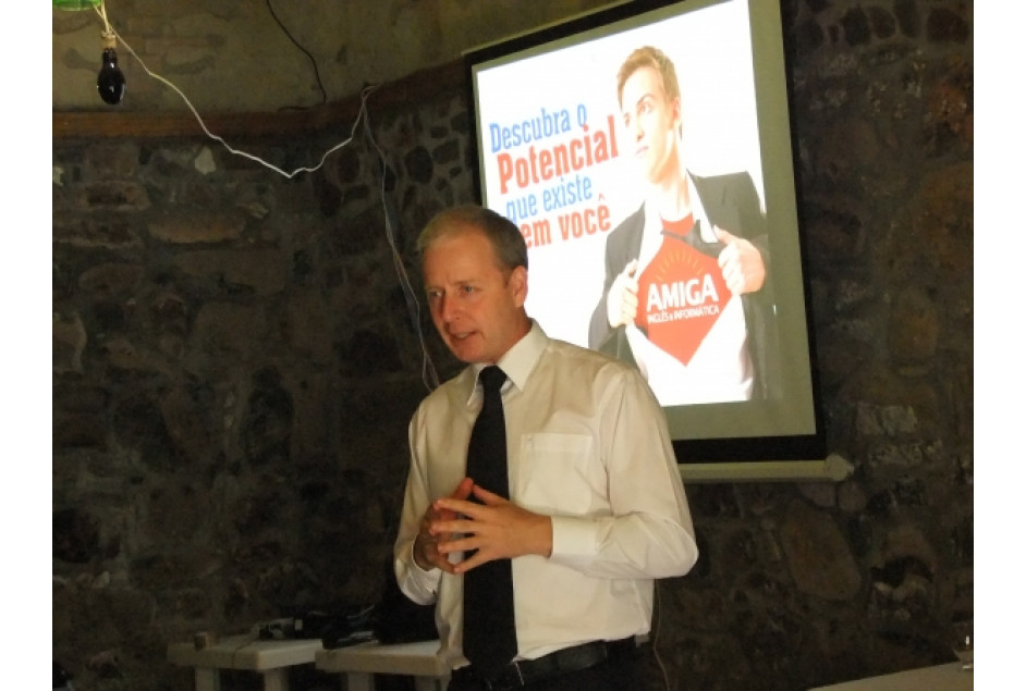A gerente geral da Amiga, Sônia Maciel, após o coffee break oferecido aos presentes, reforçou a importância do momento na qual a Amiga passa a ser referência não apenas nos treinamentos em informática, bem como também no ensino de idiomas. Logo depois e muito reticente, o professor Luiz Andreola, responsável pela aplicação do método, falou do embasamento teórico que contempla o formato de como a aprendizagem será introduzida.