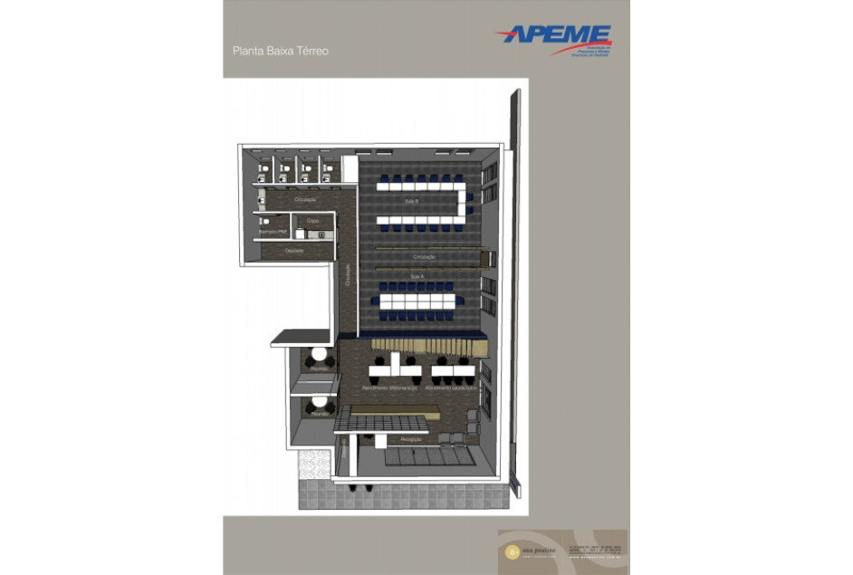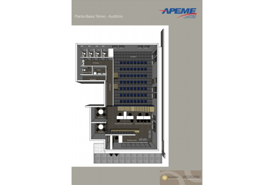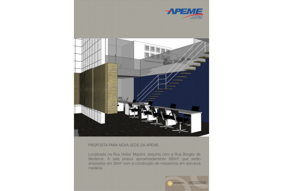 A sala adquirida está localizada na Rua Heitor Mazzini, esquina com a Rua Borges de Medeiros. O projeto está sob coordenação da arquiteta Ana Pauline Mombach e equipe da a+ ana pauline arq+urbanismo. Possui aproximadamente 400 metros quadrados, divididos entre pavimento térreo e mezanino, área suficiente para o atual número de funcionários da APEME e possível expansão. Nessa nova sede estarão reunidos num só espaço todos os serviços oferecidos pela entidade, incluindo um auditório adequadamente equipado, com capacidade para 56 pessoas, que poderá ser subdividido em duas salas de reuniões.