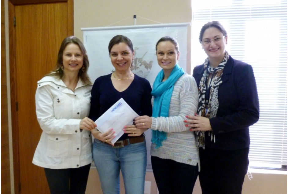 A APEME Mulher realizou, no dia 12 de junho, a entrega do valor arrecadado no Chá Beneficente “Declarações”, para a Liga Feminina de Combate ao Câncer. A entrega foi feita pela presidente da APEME Mulher, Neiva Nicaretta, e pela vice Gisele Beal, juntamente com a diretora executiva da APEME, Greice Locatelli Mattiello, à presidente da Liga, Lisiane Scomazzon.