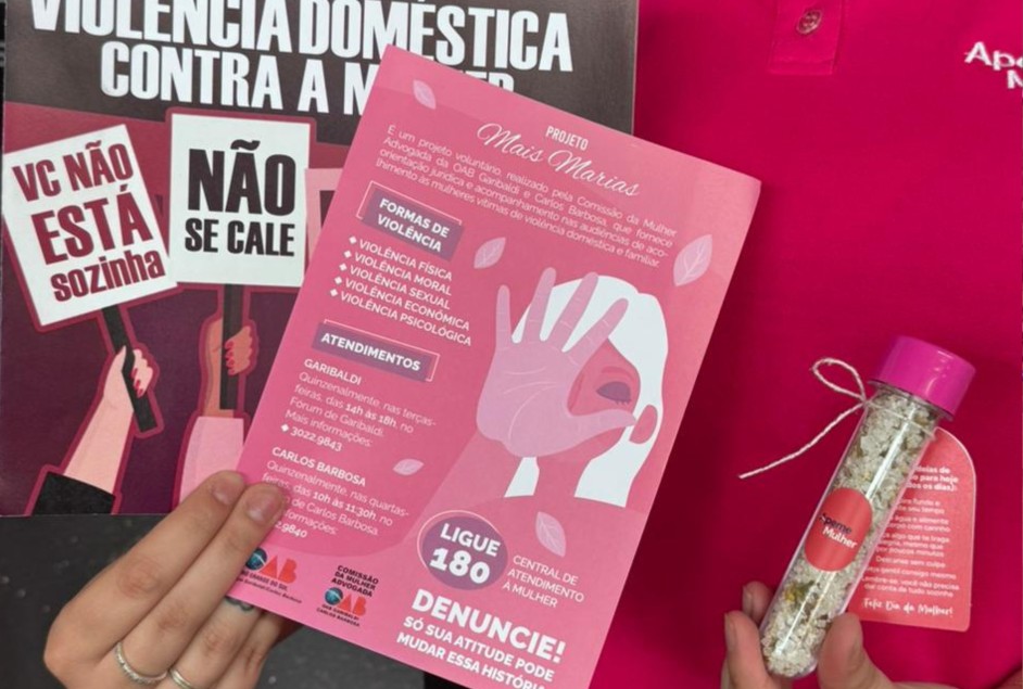 Já o COMDIM, em conjunto com o Projeto Mais Marias, distribuiu folhetos informativos com orientações sobre os direitos das mulheres.