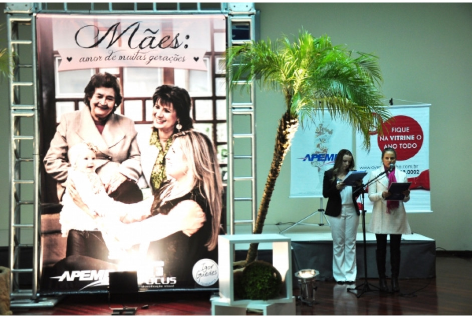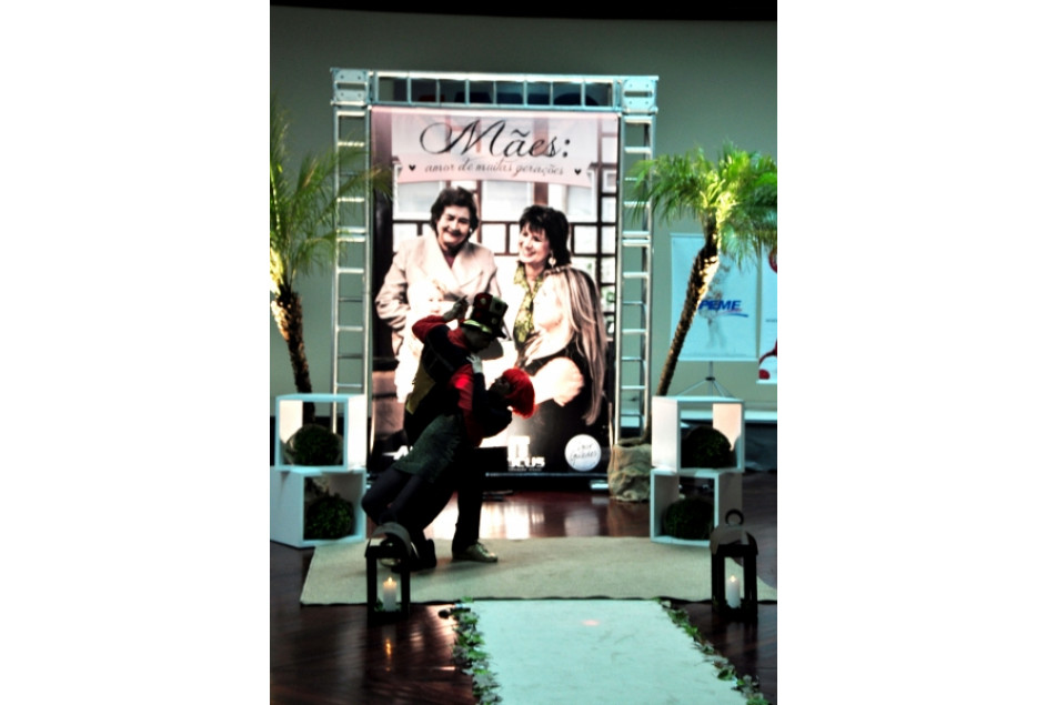 Já no salão social, foi montada a passarela para desfile das lojas: Calce Leve, Enamorare, Farroupilha Sports, M. Officer, Planeta Kids e Villa Sorelle. Foram apresentados diversos looks, desde moda íntima, enxoval, moda esportiva, moda contemporânea, infantil e calçados. Para dar um brilho especial à passarela e ao ambiente do evento, foi feito um banner com o tema “Mães: amor de muitas gerações”, em que foi fotografada uma família de Garibaldi: mãe, filha, avó e bisavó.