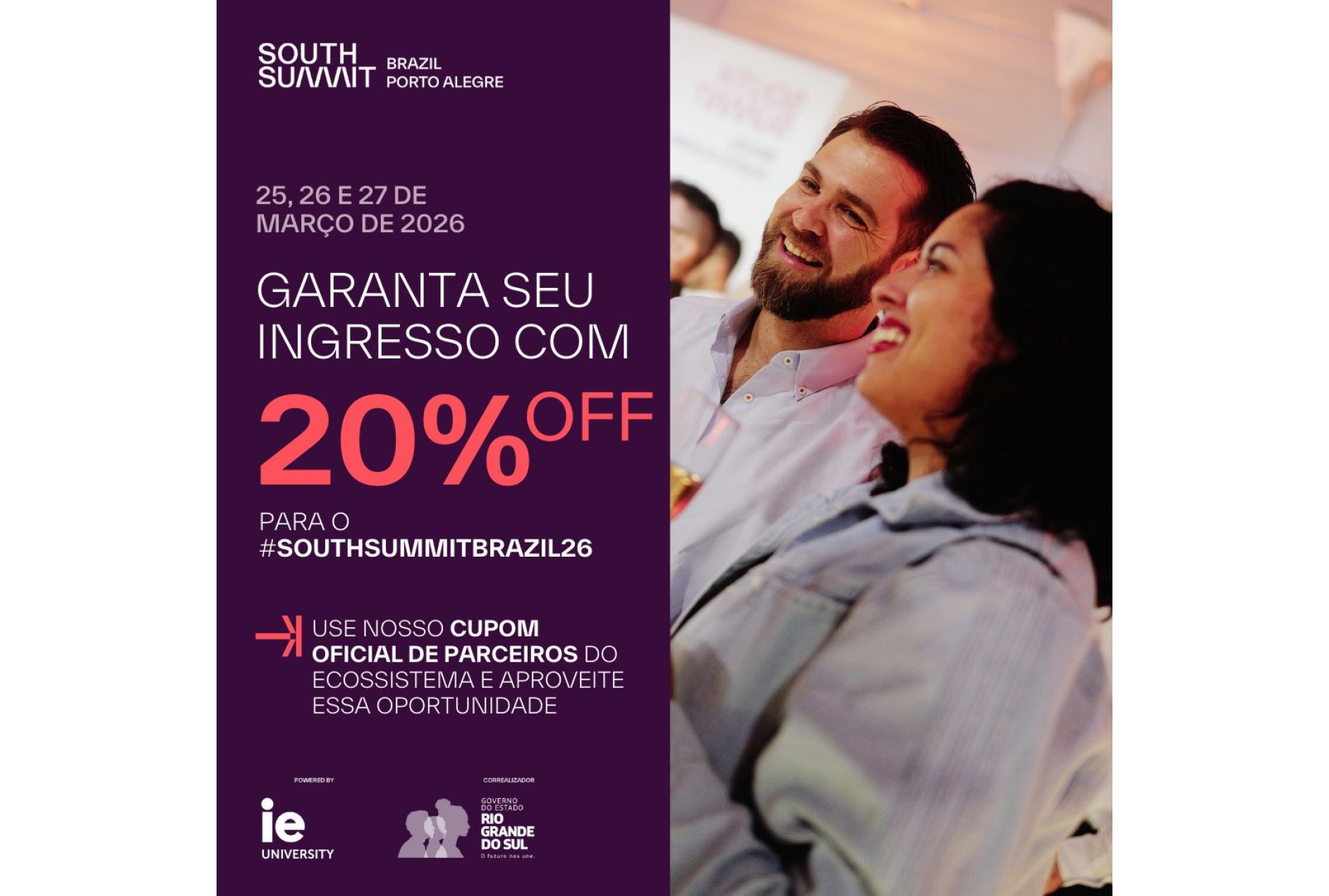 Apeme Colab Geral InovaçãoEmpresas e empreendedores associados à Apeme (Associação de Pequenas e Médias Empresas de Garibaldi) ou vinculados ao Apeme Colab Centro de Inovação terão desconto de até 20% no valor do ingresso para o South Summit Brazil, o ponto de conexão e negócios para tecnologia, inovação e empreendedorismo na América Latina. Para isso, basta inserir o código APEMECOLAB20OFF_ATT na hora da compra, que pode ser feita no site https://www.southsummit.io/pt/brazil.