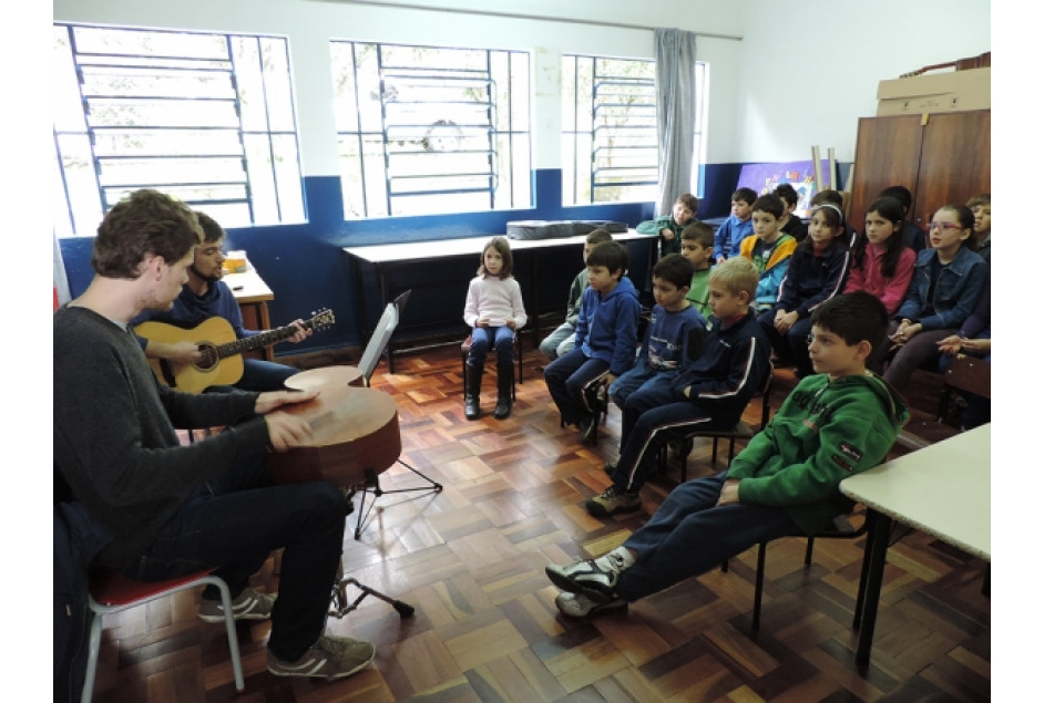 Ao apresentar as canções, Germano e Alessandro contavam um pouco sobre a história da música, a letra, o contexto em que ela foi composta. “Assim as crianças puderam ter uma noção sobre a letra e sobre a função da música apresentada”, completa o professor.