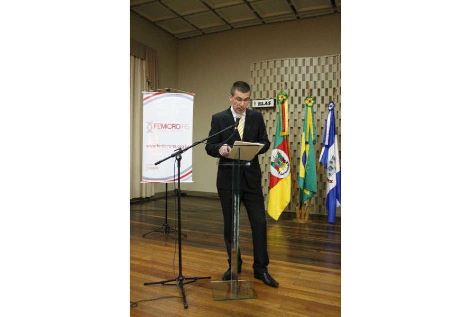 Pronunciou-se em nome do Governo do Estado do Rio Grande do Sul, o Diretor Administrativo da SESAMPE – Secretaria da Economia Solidária e Apoio à Pequena Empresa, Volnei Tesser. Ele falou sobre a importância do papel das associações comerciais e de seu relacionamento com o Governo. Destacou o Programa Gaúcho de Microcrédito, que já emprestou 368 milhões de reais desde 2011 no Rio Grande do Sul, sendo um dos maiores programas do país.