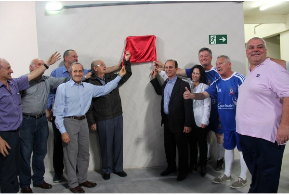 Após os pronunciamentos houve o descerramento da placa inaugural e uma benção, proferida pelo Pároco Frei Jadir Segala. Finalizando a programação de inauguração, às 20h30min foi a vez dos ex atletas da AGEL entrarem em campo.