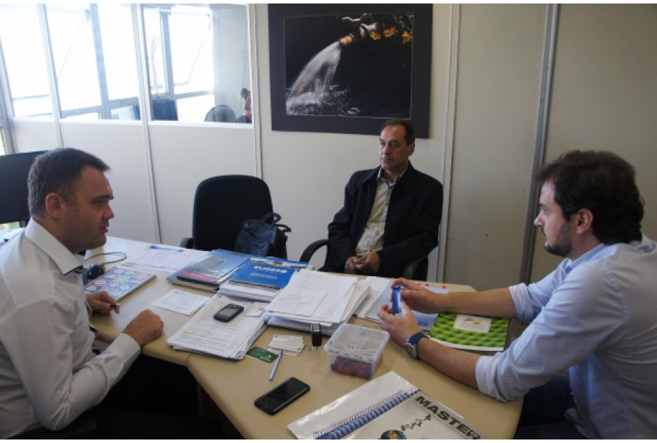O secretário municipal de Planejamento, Indústria e Comércio, Paulo Salvi, foi recebido pelo secretário estadual do Desenvolvimento Econômico, Ciência e Tecnologia, Fábio Branco, na última quinta-feira, dia 26. A reunião com os diretores do Departamento de Apoio à Micro e Pequena Empresa, Carlos Alberto Hundertmarker, e do Departamento de Promoção do Investimento e Sala do Investidor, Adriano Boff, teve o objetivo de estreitar as relações entre o município e o governo do Estado para projetos futuros, visando ao crescimento econômico do município.