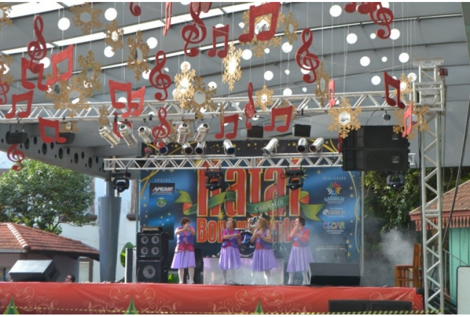 20h45min - Chegada do Papai Noel com participações especiais: Coral Carlos Gomes; Grupos de Canto Fratelli e Fratellini; Grupo de Cantoria Italiana Stella D´Itália; Grupo de Canto do Clube Recreativo da Maior Idade Vivere Bene e Orquestra Jovem de Garibaldi.