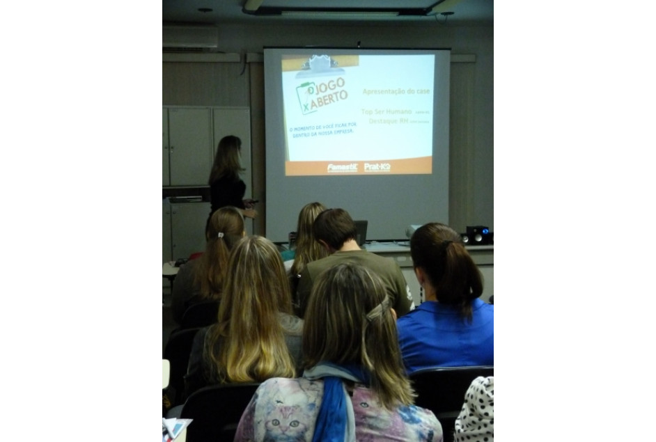 A APEME – Associação de Pequenas e Médias Empresas de Garibaldi realizou a palestra “Comunicação Interna como Gestão Estratégica”, na noite de 29 de abril. Foi apresentado o Case do Programa “Jogo Aberto” desenvolvido na Famastil Taurus e Prat-K, sediada em Gramado. O evento reuniu 40 pessoas no auditório da APEME.