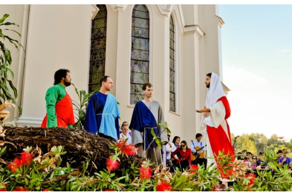 Na Quinta-feira Santa, 28 de março, haverá a Celebração de Lava-pés e Santa Ceia às 19h, na Igreja Matriz São Pedro, com a tradicional encenação do Evangelho feita pelo Emaús.