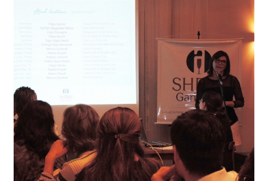 A presidente do SHRBS Garibaldi, Clege Dalmaz, abriu o evento agradecendo a presença de todos e explanou sobre as ações do Sindicato, desde 2013 quando sua diretoria foi renovada. A Secretária de Turismo e Cultura, Ivane Fávero, falou sobre as principais ações que estão ocorrendo para desenvolver o Turismo em Garibaldi, de forma engajada com as ações do Sindicato.