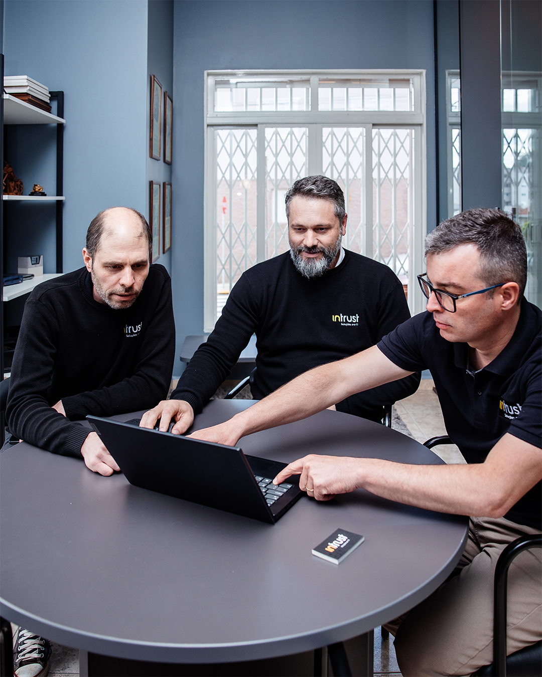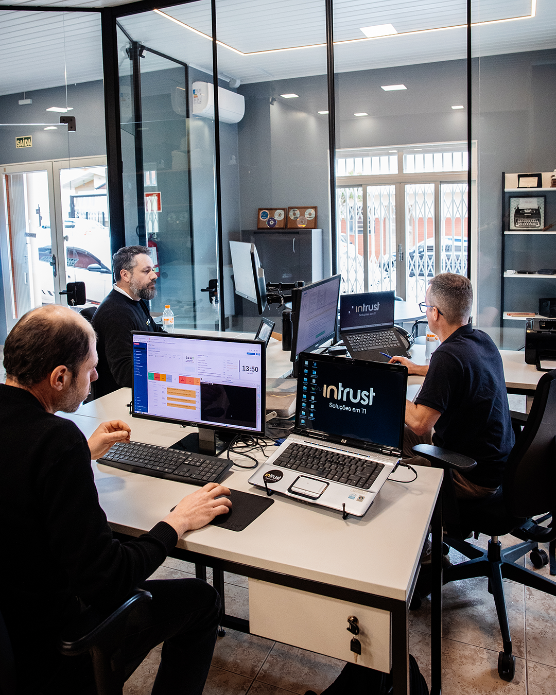 O QUE FAZ? "A Intrust trabalha com soluções inteligentes em TI, oferecendo tecnologia personalizada com foco em performance, organização e economia. Conta com os seguintes serviços: