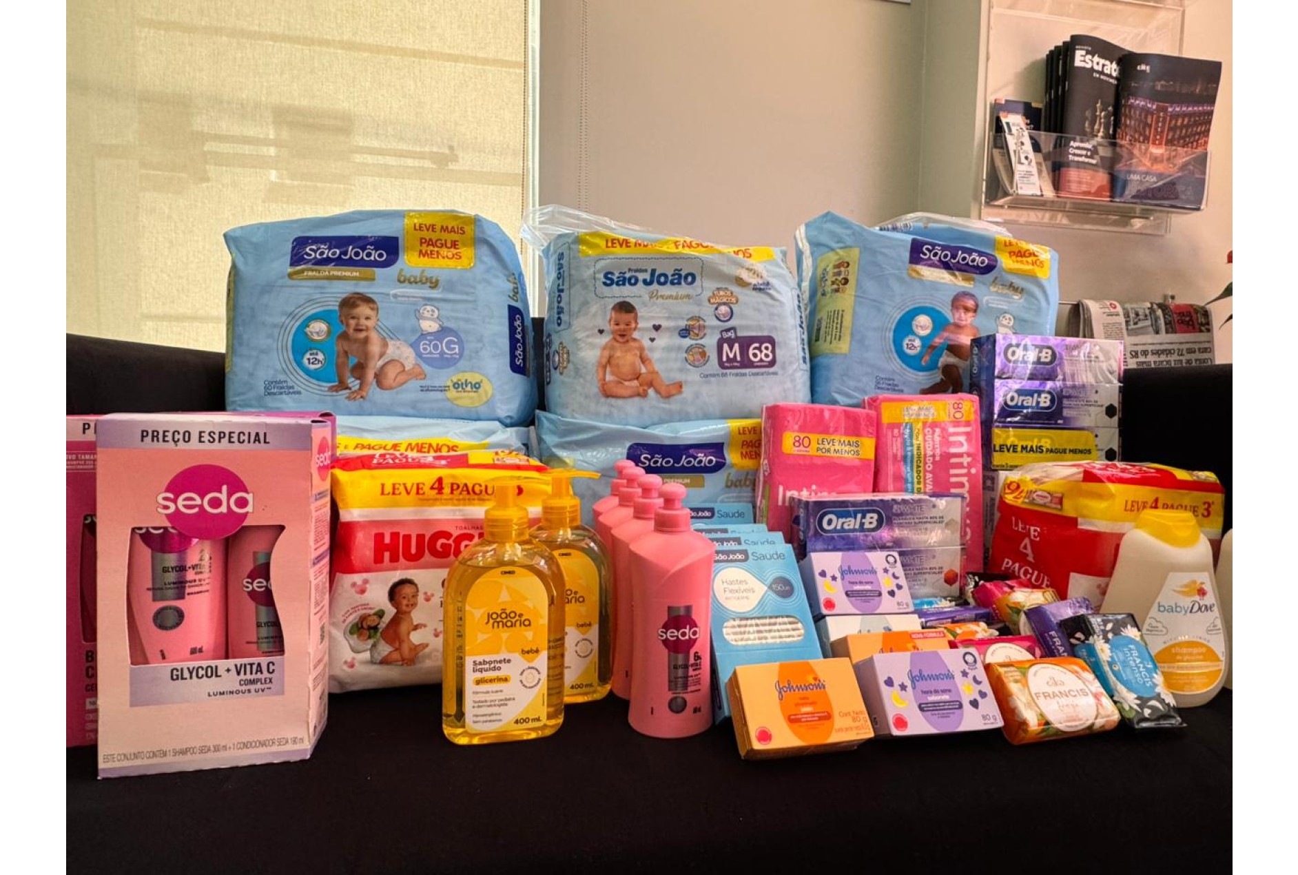 - Itens de higiene: escovas de dente + pastas de dente + enxaguantes bucais + fraldas + sabonetes + hastes flexíveis + kits de xampu e condicionador + toalhas umedecidas