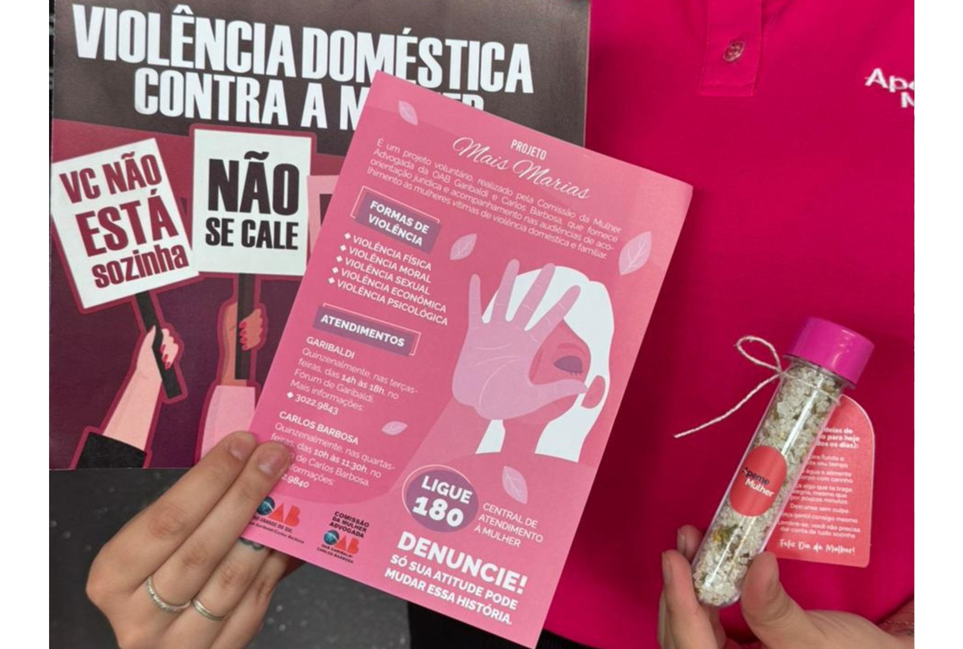 Já o COMDIM, em conjunto com o Projeto Mais Marias, distribuiu folhetos informativos com orientações sobre os direitos das mulheres.