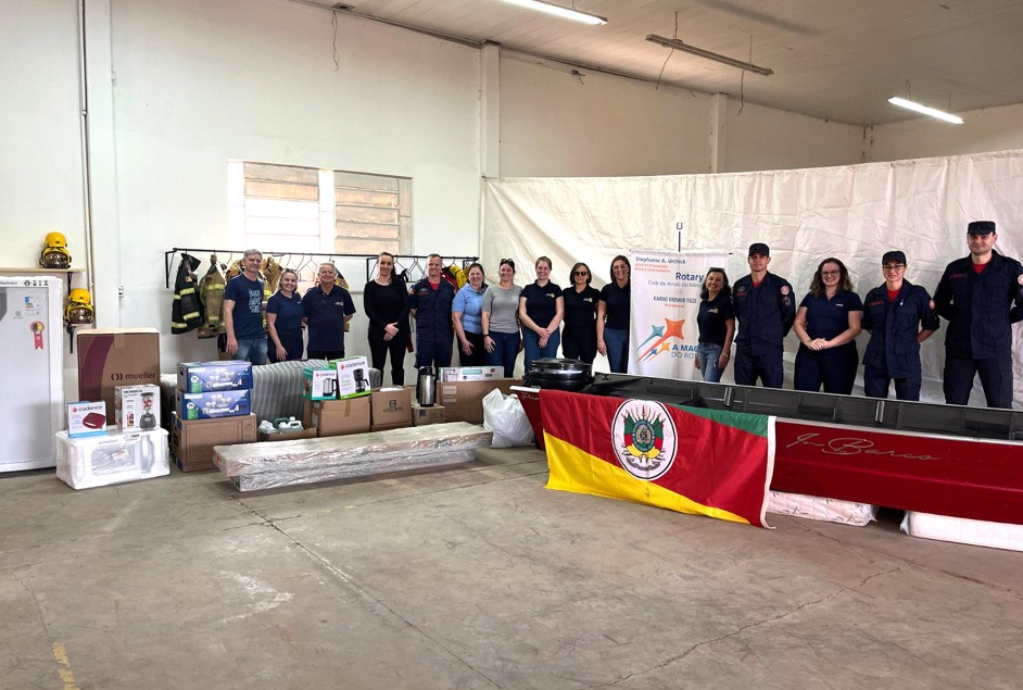 “Através do contato com o Rotary Clube de Arroio do Meio, entendemos que a principal demanda do município no momento eram itens para auxiliar na estruturação do ponto provisório dos Bombeiros Militares, que foi criado de forma emergencial para suprir as demandas pós catástrofes climáticas e que agora está buscando se fixar de forma permanente no munícipio”, explica a coordenadora da Parceiros Voluntários de Garibaldi, Renata Cimadon.