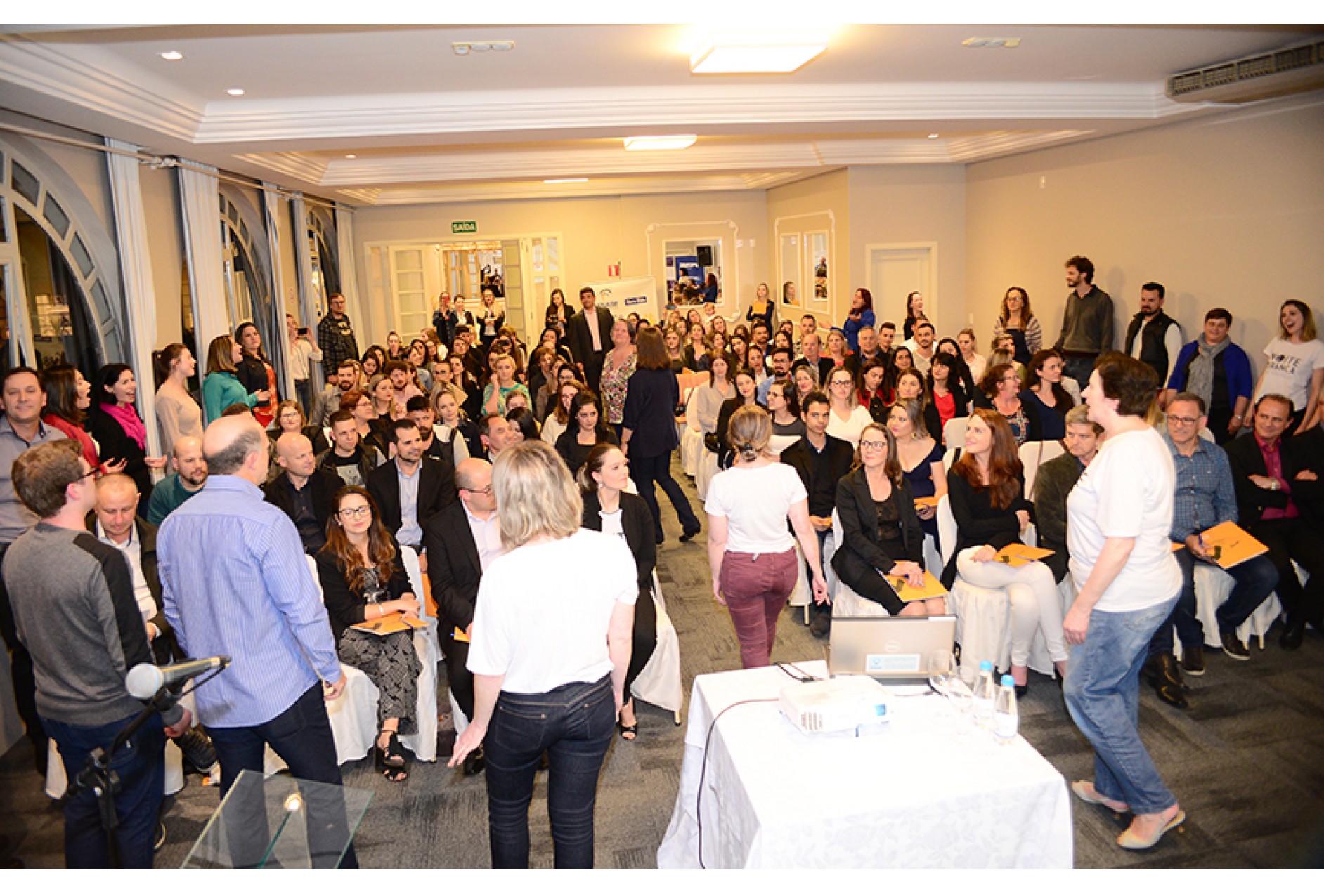 A grande surpresa da noite foi a intervenção do Coro AABB Garibaldi durante uma das palestras, apresentando a canção “Amizade”. A ação, inesperada para o público, demonstrou a importância do encantamento não previsível para a atração e fidelização do cliente. A regente do coro, Franceli Zimmer, disse a união do setor é um fato que fortalece ainda mais a iniciativa.